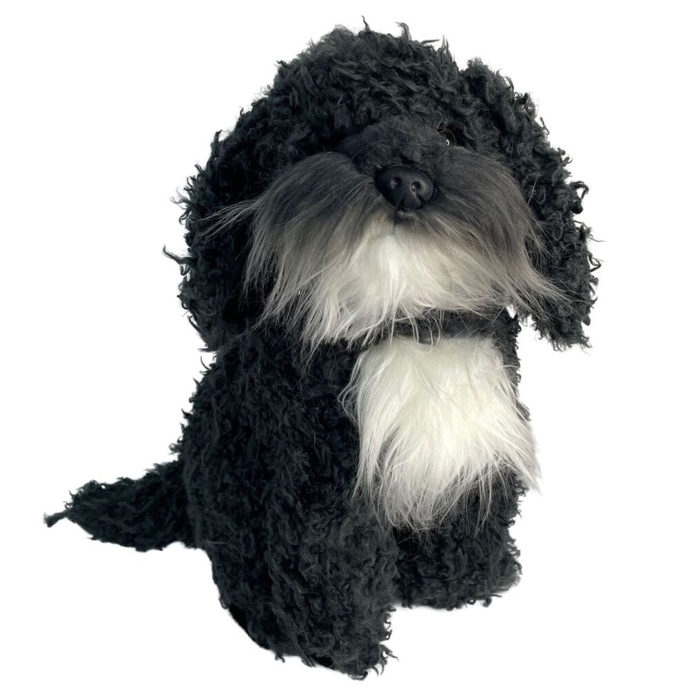 Bonnie is a really cute Black Oodle, Cavoodle mix cross-breed plush toy. He is a realistic handmade cuddly Poodle X soft toy.