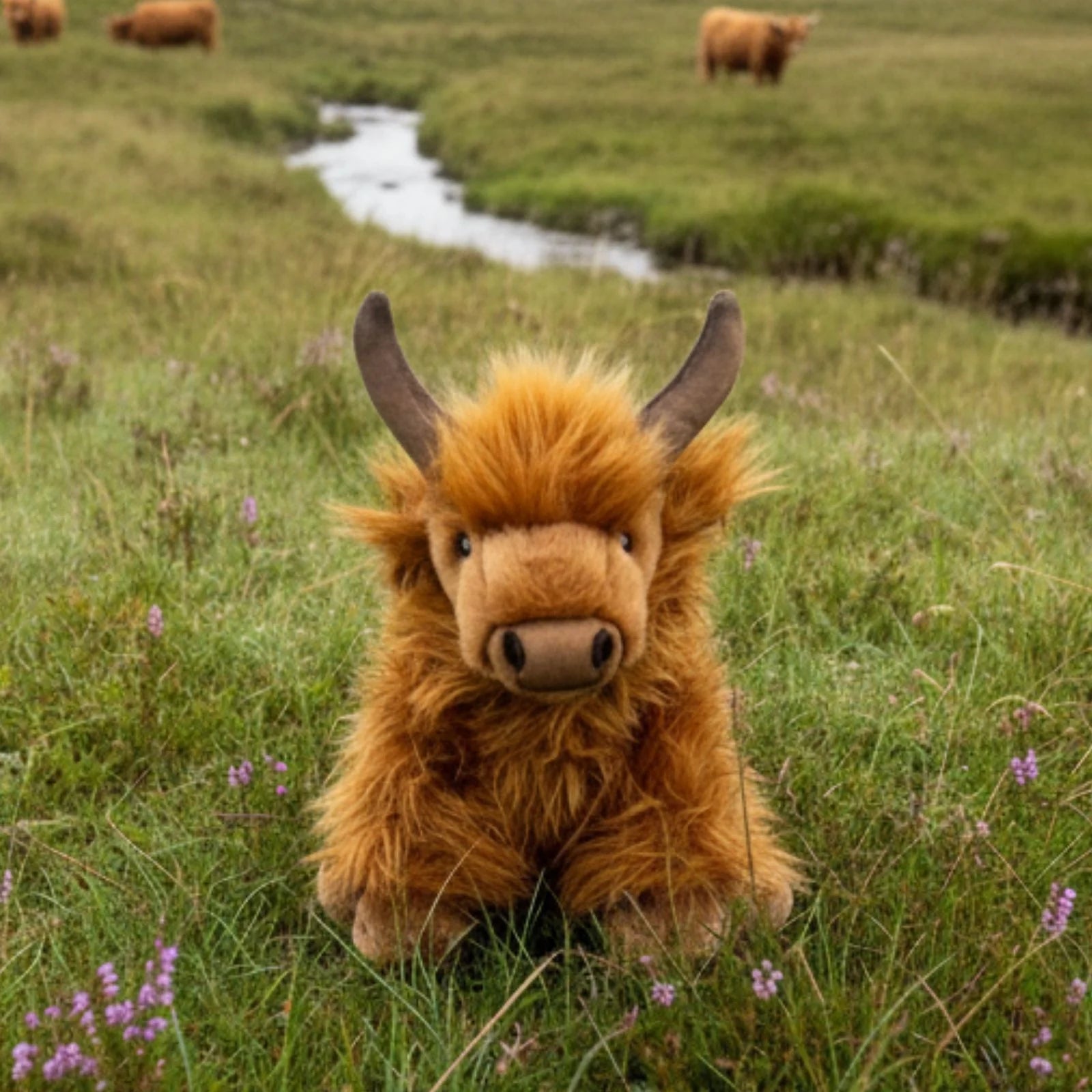 Buttercup is a handmade, high quality-made Highland cow soft stuffed plush toy.