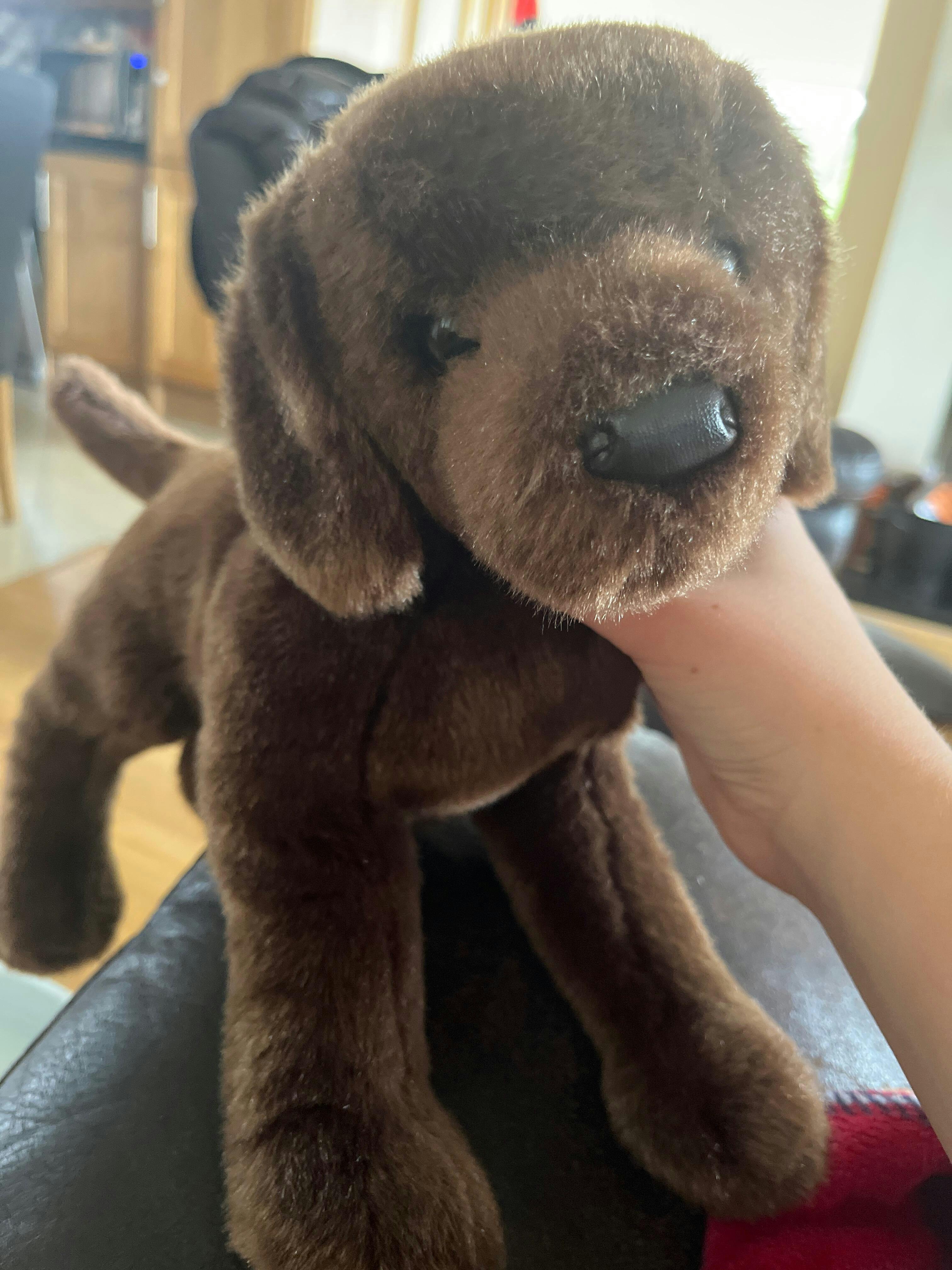 Are you looking for a puppy who’s already housebroken and knows how to sit and stay? Cocoa our Chocolate Lab stuffed animal might be your perfect pet! Featuring a cuddly plush coat of chocolatey brown fur, Cocoa is both realistic and huggable. Interior plastic pellets lend a lifelike weight to this plush toy and her 16 inch size is nearly that of a real puppy! She features a soft, leatherette nose and expressive eyes that will warm your heart. Cocoa’s durable, floppy design is easy to pose and ready for hours of imaginative play. Bring this friendly plush dog home today and she will become a quick favorite of all fans of the loyal Labrador Retriever breed!