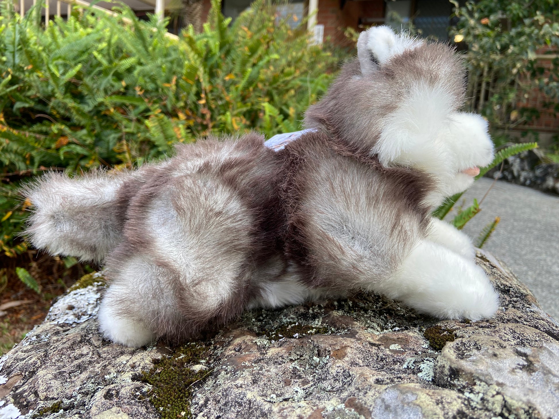 Marbles is a really cute realistic handmade stuffed Siberian Husky puppy soft toy in a lying position. Our puppy will never grow up so you will have a cuddly soft plushie to always cuddle.