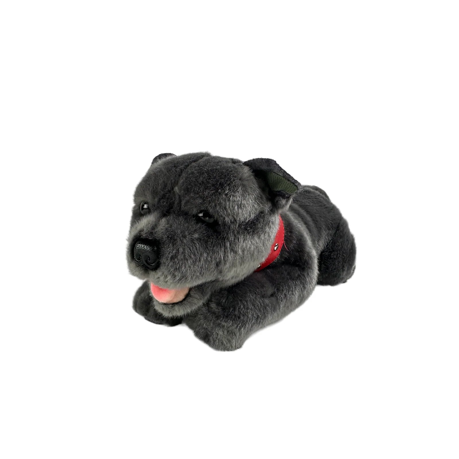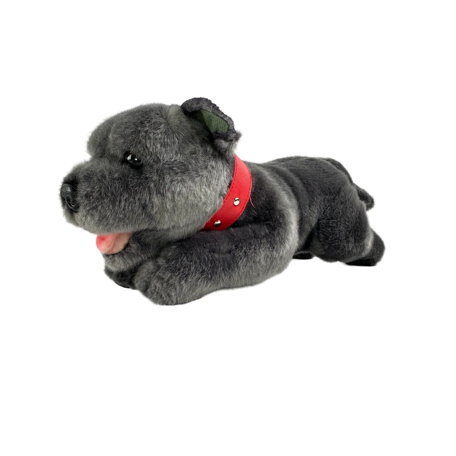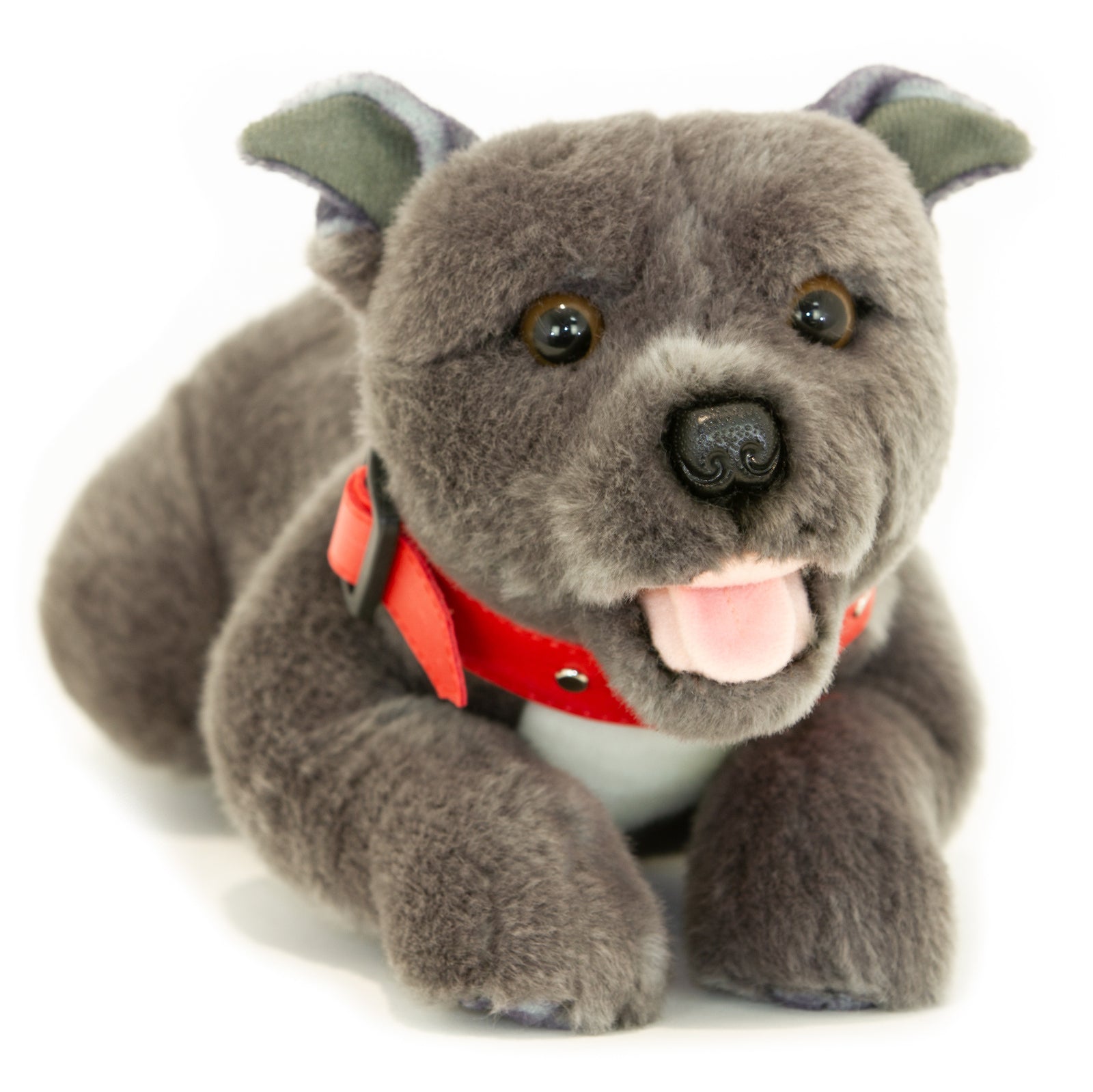 Bullet is an exquisitely soft and realistic handcrafted lying Blue Staffordshire Bull Terrier plush puppy toy. They are also known as Staffies and this handmade puppy will never grow up so you will have a cuddly soft plushie to always cuddle.