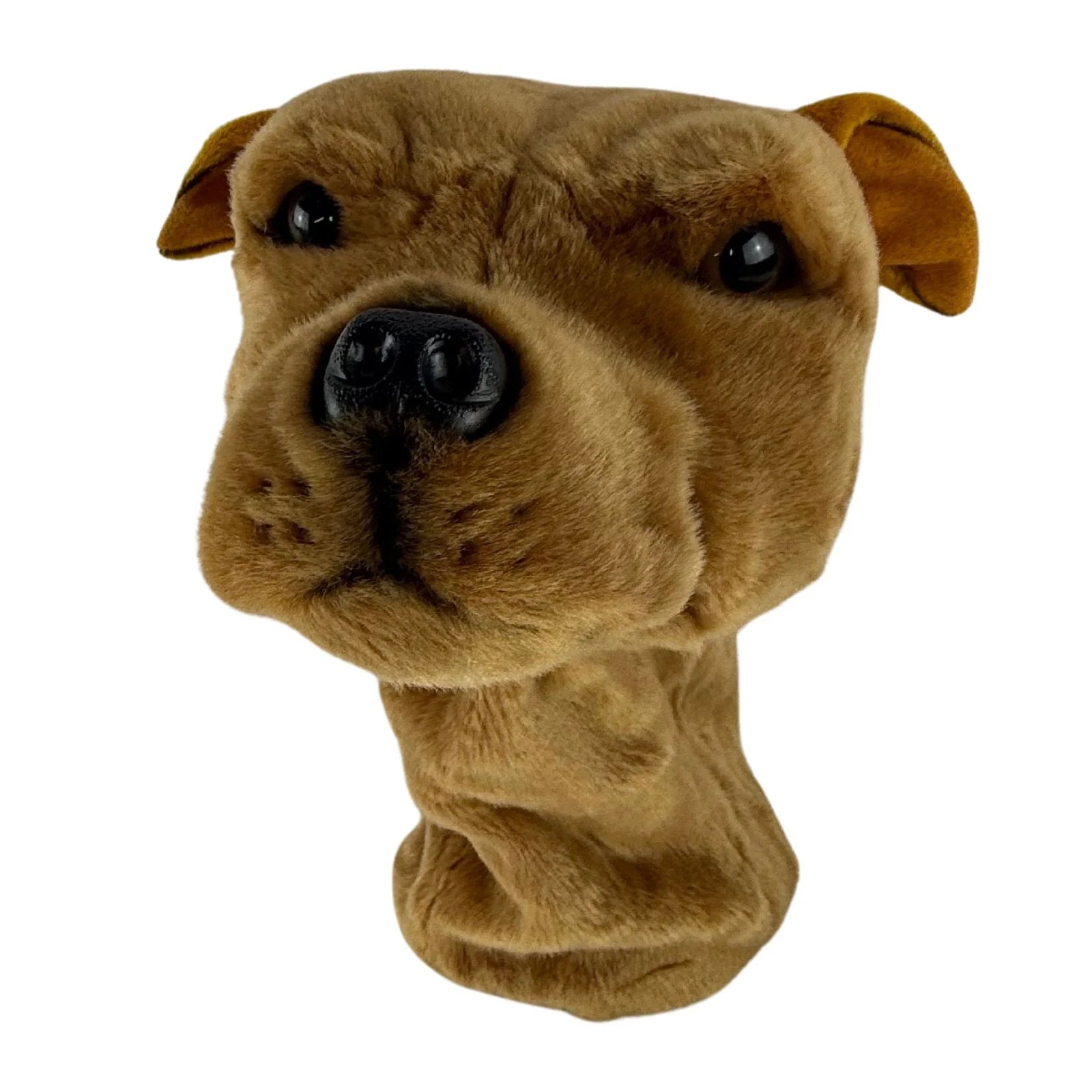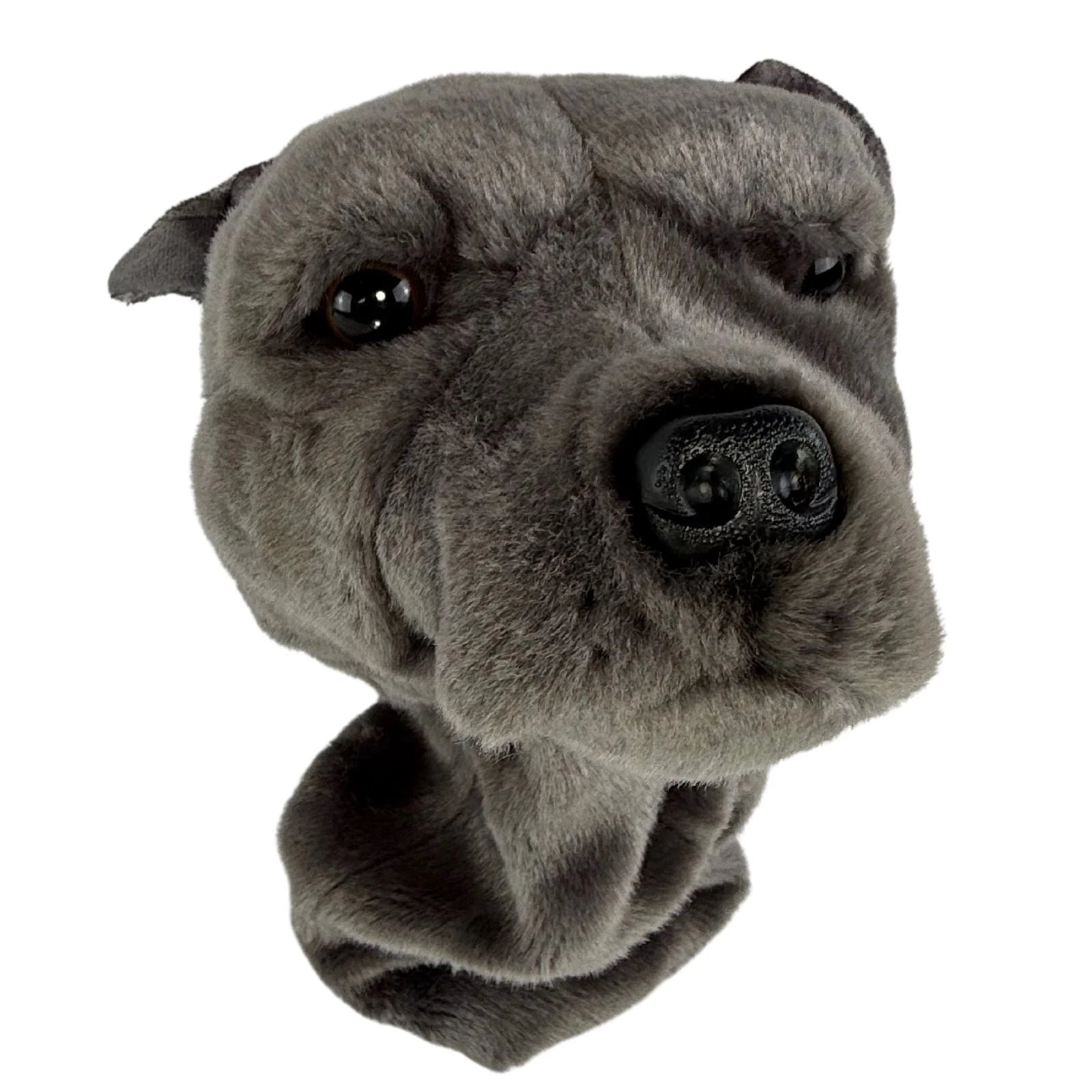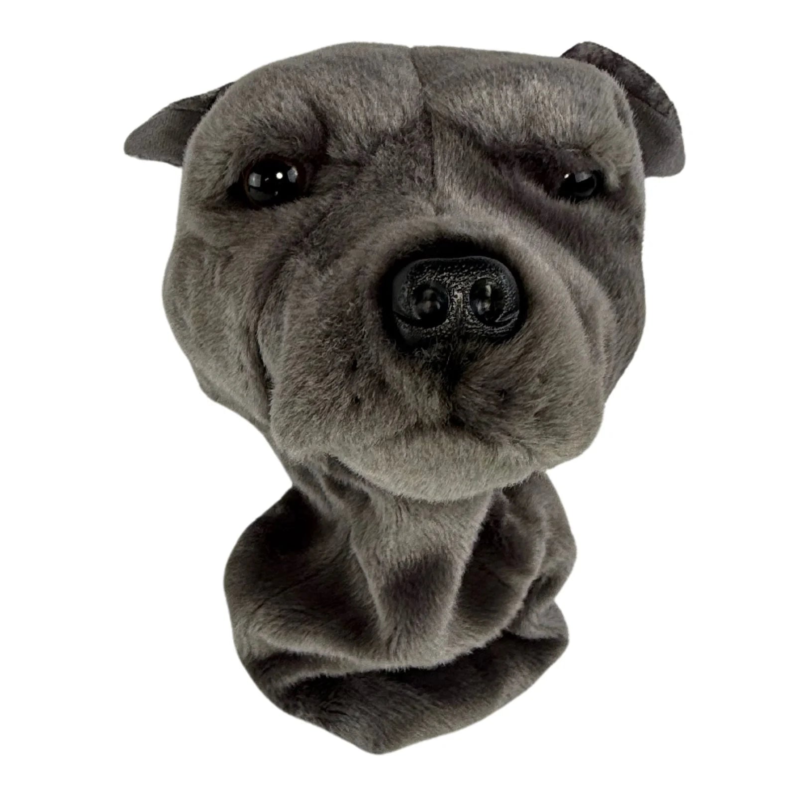 This Staffy Golf Puppet is a high-quality really cute realistic handmade and airbrushed medium-sized blue Staffordshire Bull Terrier plush toy.