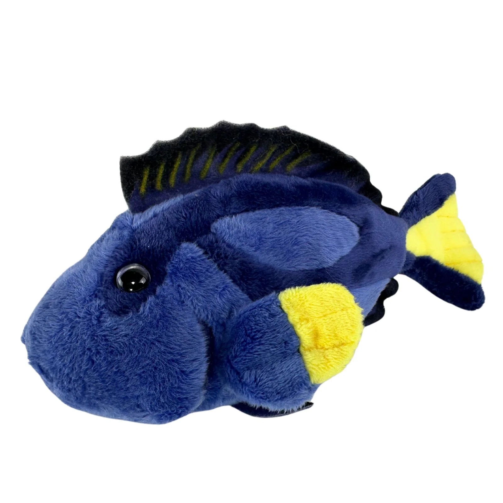 Koral is an exquisitely soft and realistic soft plush toy Blue Tang Fish. The Clownfish forms a unique symbiotic relationship with sea anemones, living among their stinging tentacles without getting harmed. They are born male, but can change to female if needed. They are also a protective parent, guarding their eggs until they hatch. The Blue Tang fish is found in coral reefs and is vital in keeping coral reefs healthy by eating algae that can otherwise overwhelm the coral. They can change colour slightly depending on their mood or surroundings. They have a sharp spine on their tail to protect them from predators. They have a unique swimming style, moving in quick, darting motions.