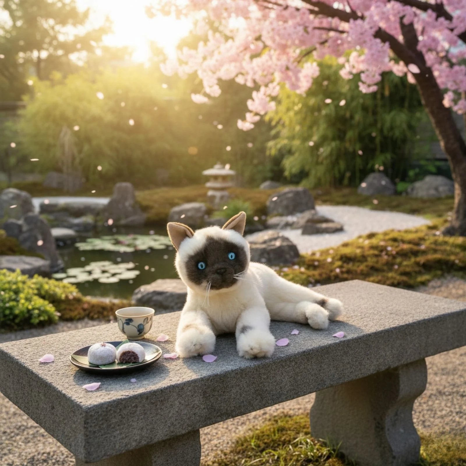 Mia is a lying Burmese cat and is a realistic soft plush toy. This handmade and airbrush cat is waiting for plenty of hugs.