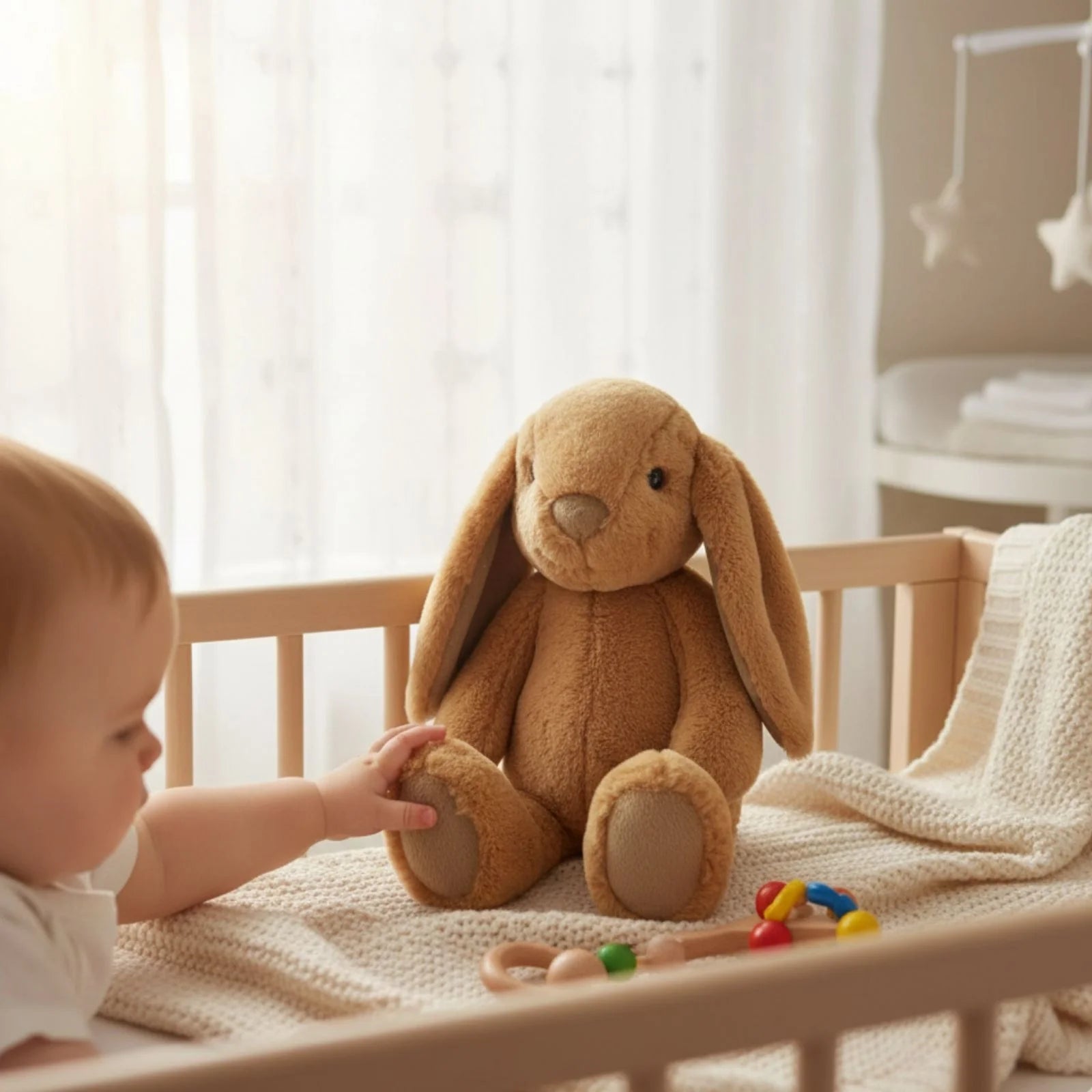 Nugget is a handmade, high quality-made baby fluffy rabbit soft and cuddly stuffed plush toy. Perfect for little hands to hug. Made with safe, high-quality materials, they are durable and snuggly for comfort, playtime fun, and to help spark imagination and a love for nature. Inspired by a real rabbit - gently, social animals known for their long ears, twitchy noses, and love of hopping through meadows.