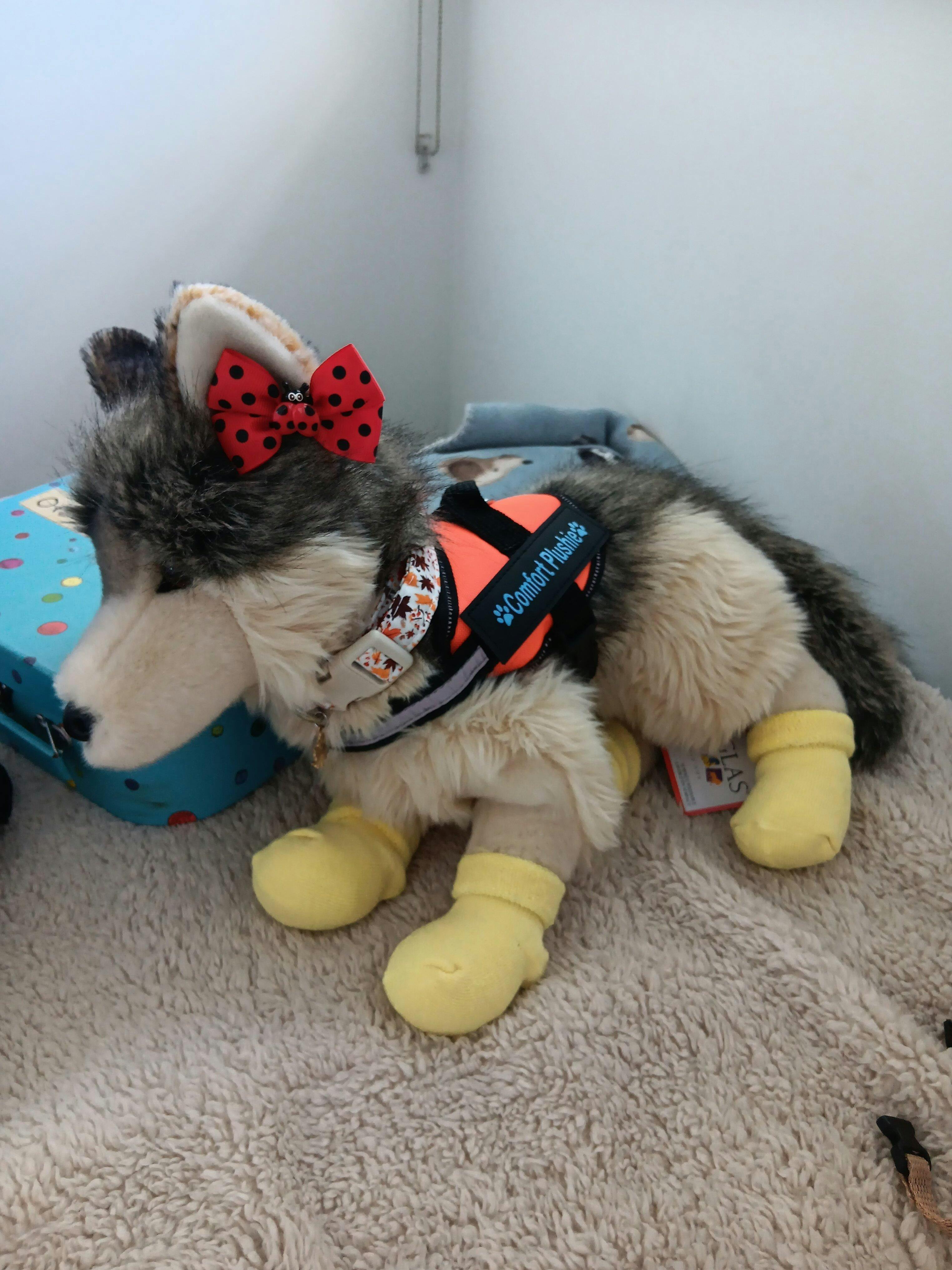 With a realistic appearance and luxurious faux fur materials, Smoke the plush Wolf will captivate nature lovers of all ages! Plush fabrics depicting a mixture of different colors and shades come together to lend her an especially lifelike look. Smoke’s design features a floppy body that allows for easy posing and an irresistible cuddliness that will snuggle perfectly into your arms. Smoke’s eyes glow amber in the light and she features a soft, leatherette nose for additional realism. Meticulous airbrushing across her face highlights the distinction and grace of this beloved wild animal. Capture Smoke the noble Wolf stuffed animal for yourself or surprise someone special with this cuddly wildlife treasure!
