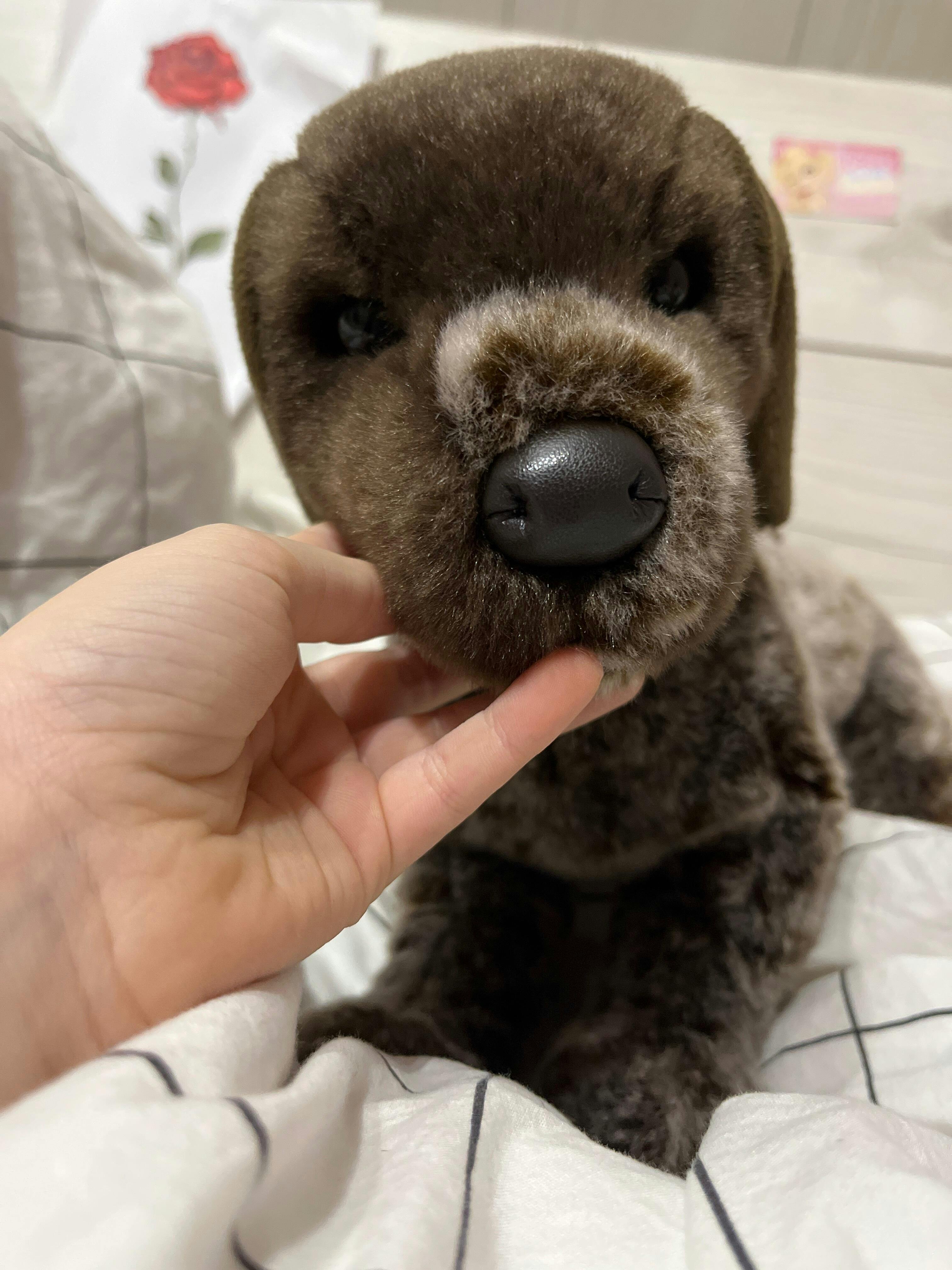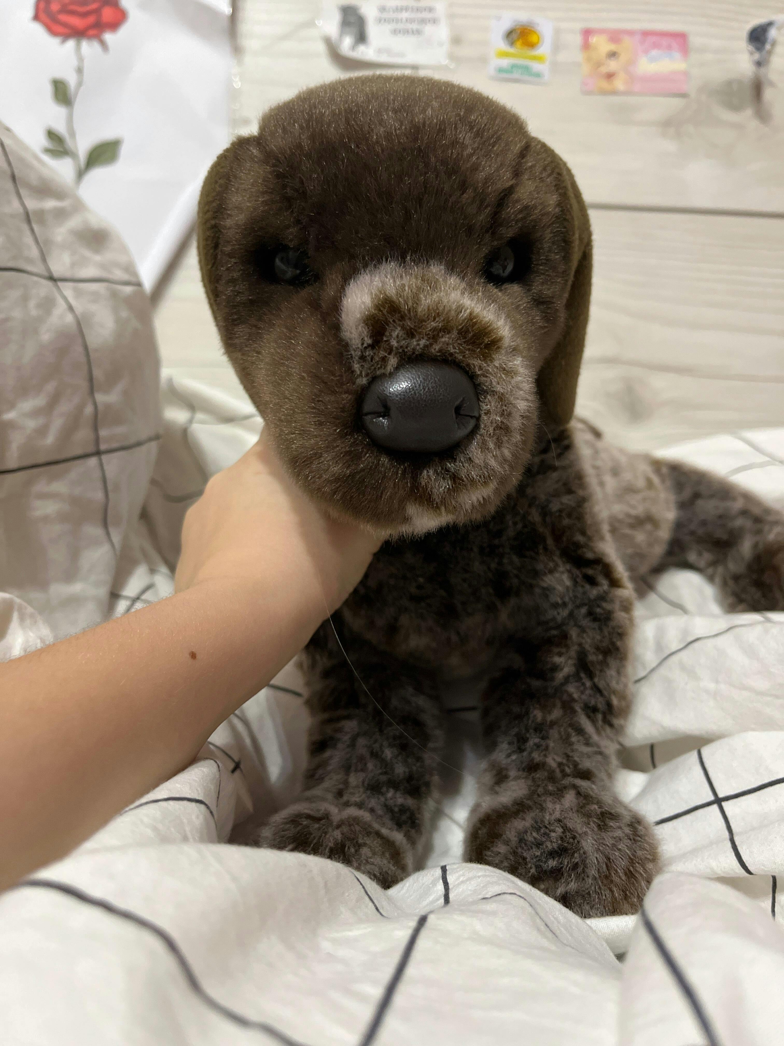 With a brown speckled coat and a nose for adventure, Wolfgang the plush Pointer puppy is a first class hunting dog! Stand back and let him sniff out an exciting day of fun and games! With Wolfgang’s highly realistic, breed specific design, even the most discerning of dog lovers will be howling his praises. Cuddly materials of the highest quality have been combined with silky polyester fill to create a plush companion so soft and huggable, it’s easy to see why this gorgeous pup is such a fan favorite! Wolfgang’s winsome expression can be attributed to those soulful brown puppy eyes and his look is completed with a soft, brown leatherette nose. Bring home this charming hound and Wolfgang the Pointer stuffed animal will become a beloved member of the family!